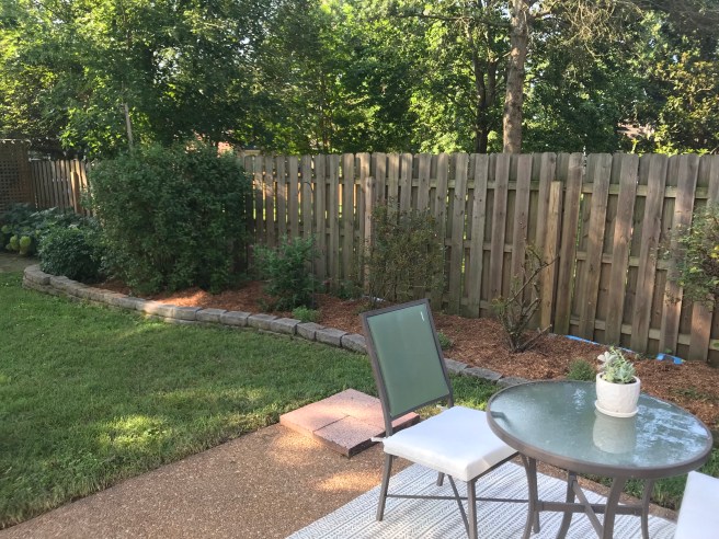 I absolutely love our backyard, but man it requires a lot of work. After just a few weeks of rain and hot weather, it looks like a jungle is encroaching upon us. I had to take a few before and afters pics so I could appreciate all the hard work we put into the backyard this past weekend in the 96+ degree temps.