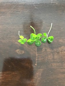 As we were playing outside today, Will asked me about clovers. I told him that usually clovers only have three leaves, but if you are lucky, you may find one with four leaves.